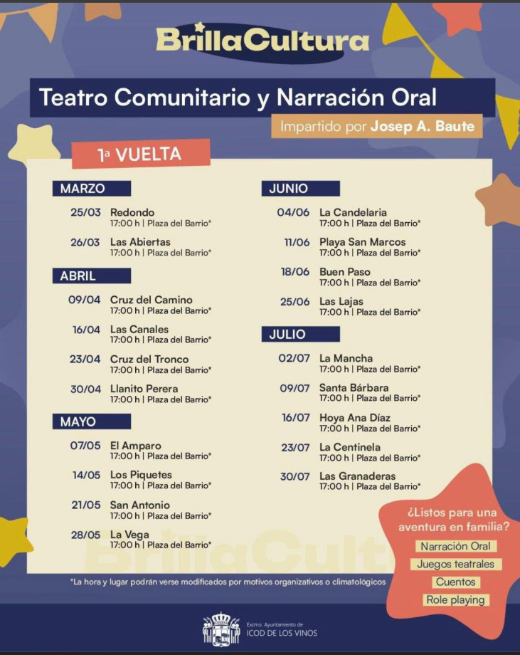 “BrillaCultura” is kicking off this week, and it’s basically a community theatre and storytelling tour going around the neighbourhoods of Icod de los Vinos.