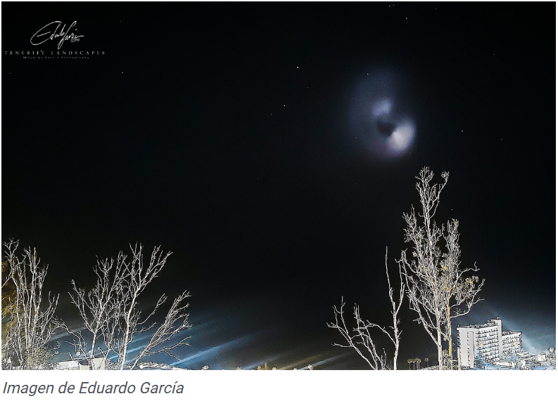Photographer Eduardo García managed to capture the moment from his balcony in Los Gigantes, in Santiago del Teide. According to García, it was a rare and difficult phenomenon to see, and he was lucky enough to have his camera ready while watching the sky.