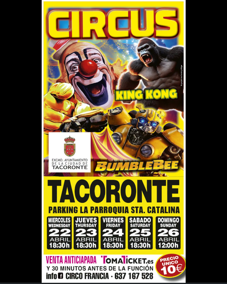 From April 22 to 26, the Circo de Francia sets up in Tacoronte, right by the Parroquia de Santa Catalina.